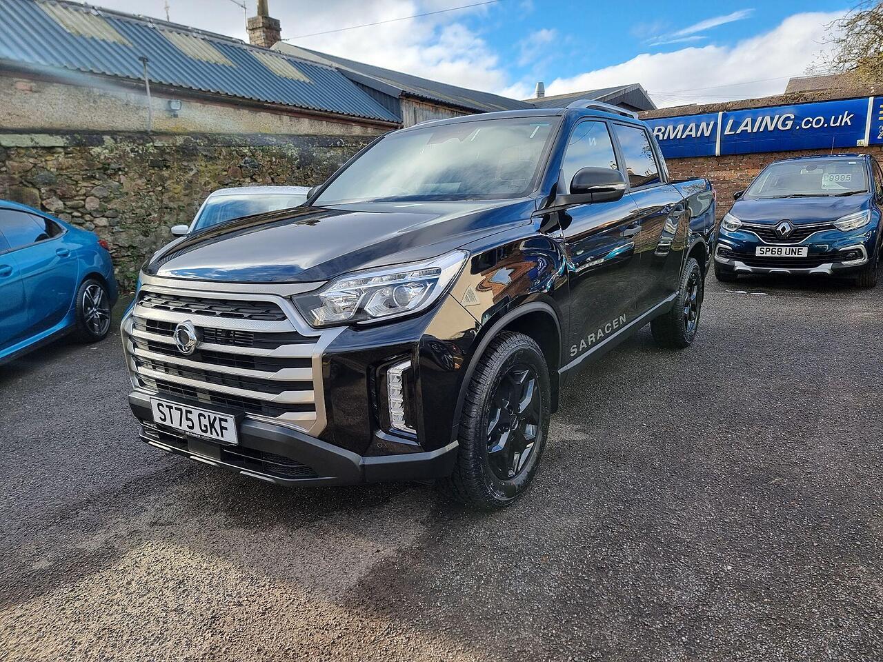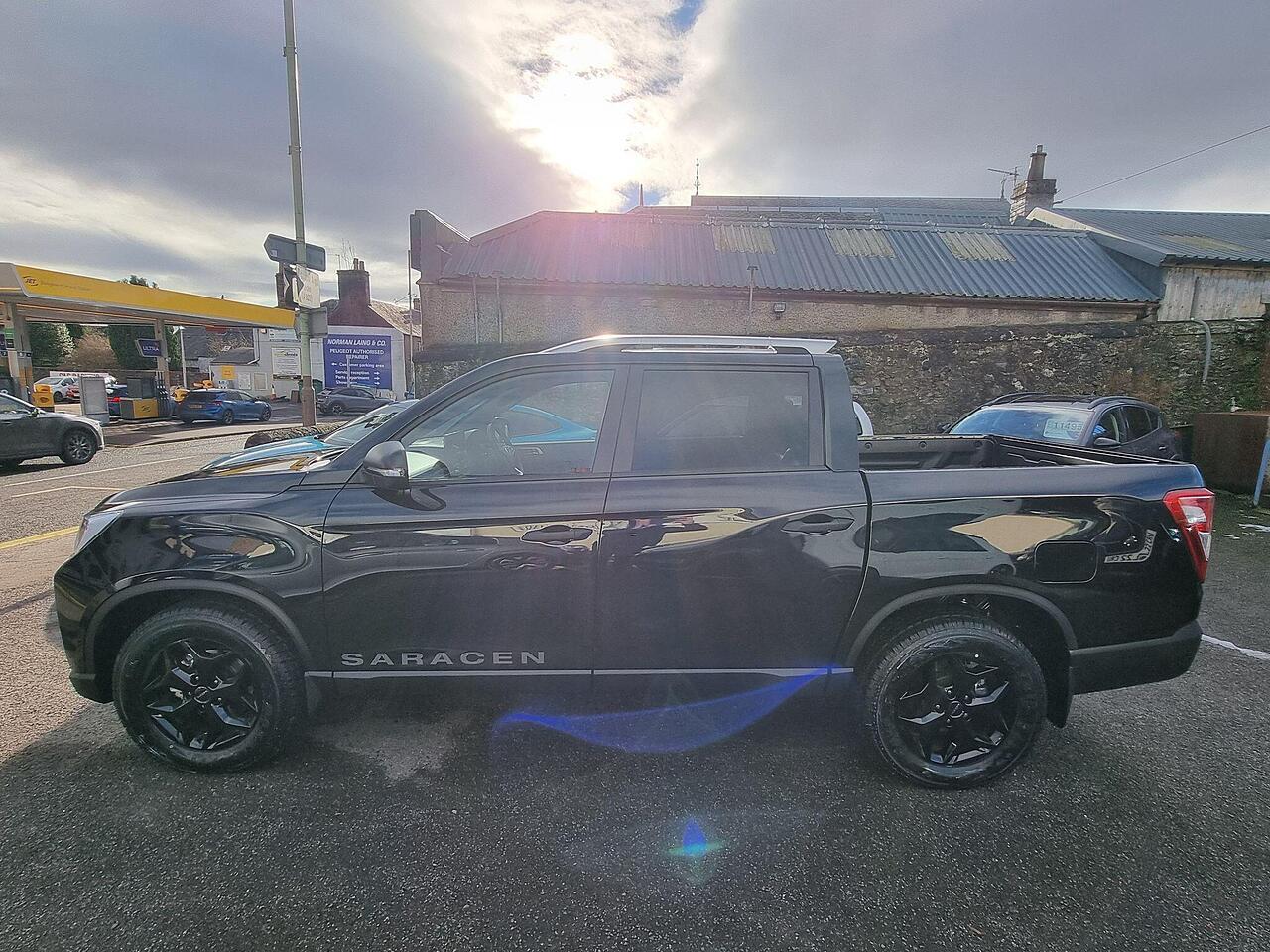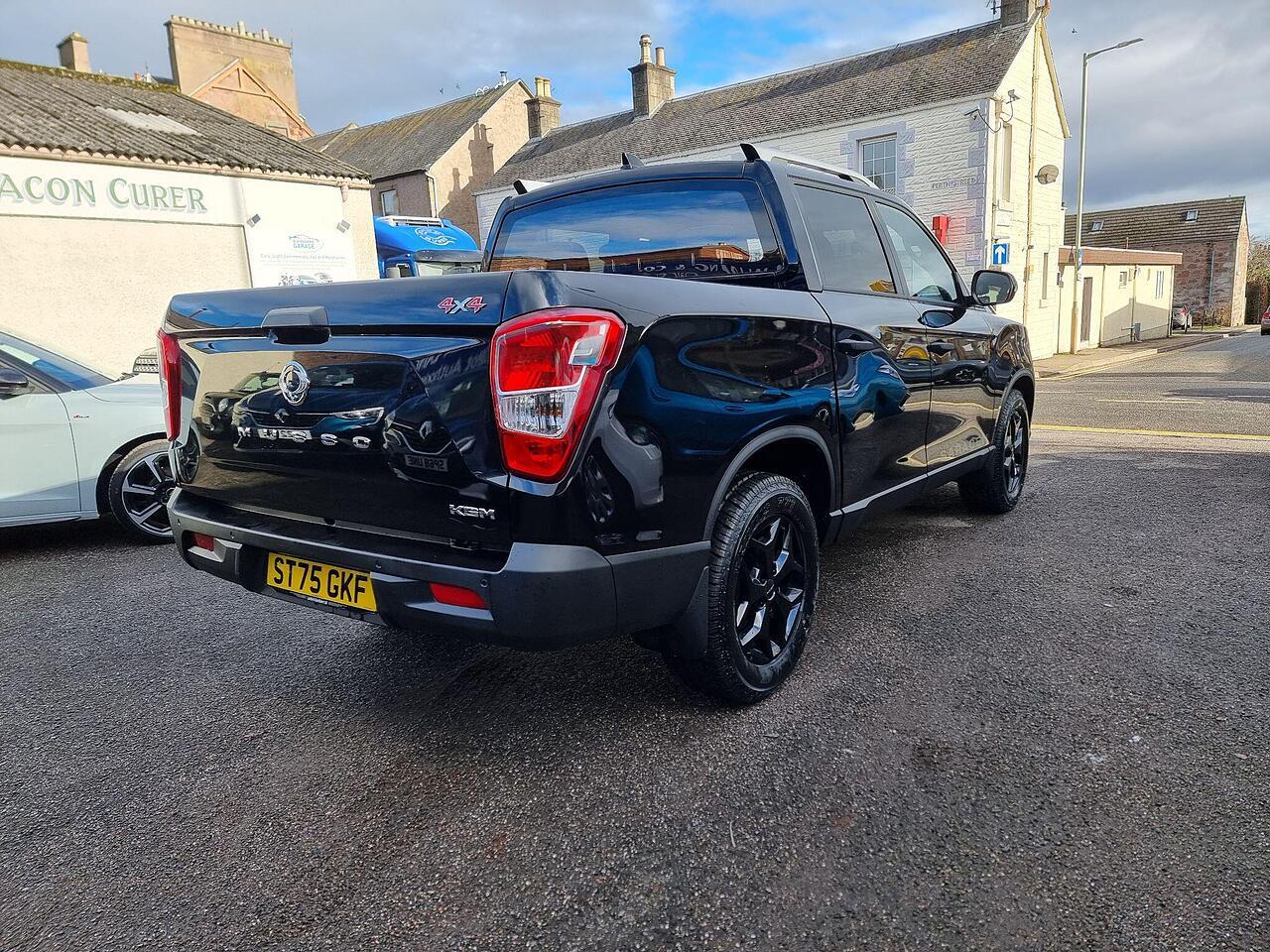 This KGM Musso Saracen is presented in exceptional condition with an incredibly low mileage of just 152 miles, making it virtually as new. This 2025 registered 2.2D Saracen Auto 4WD Euro 6 4dr benefits from having had only one owner since new. Under the bonnet, it boasts a powerful 2.2 litre diesel engine delivering 199 bhp, paired with a capable four wheel drive system. The Saracen trim level ensures a premium experience, featuring desirable amenities such as ventilated and heated front seats, automatic dual zone air conditioning, and a heated steering wheel for ultimate comfort. Connectivity is seamless with Apple CarPlay and Google Android Auto integration, while rear passengers can also enjoy the comfort of heated rear seats.