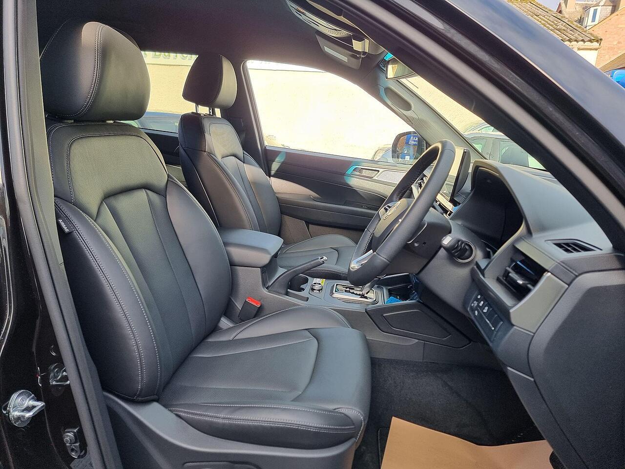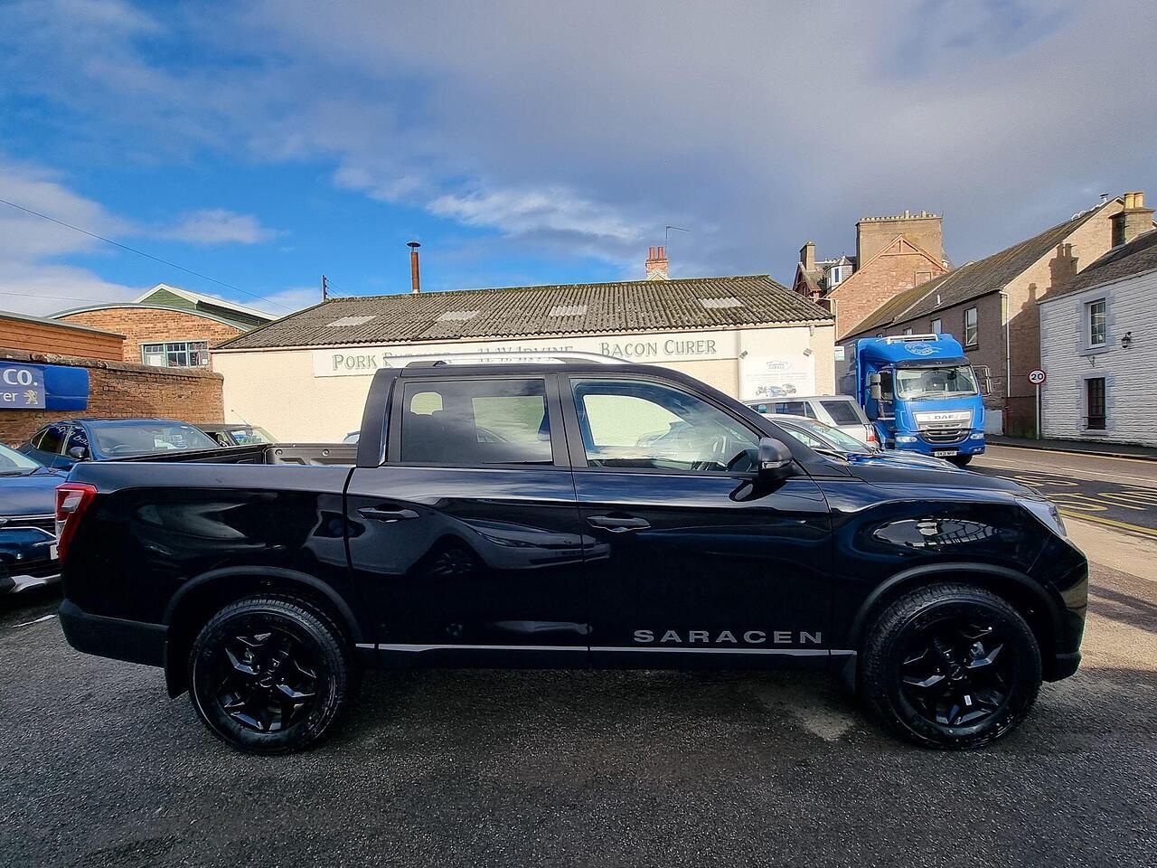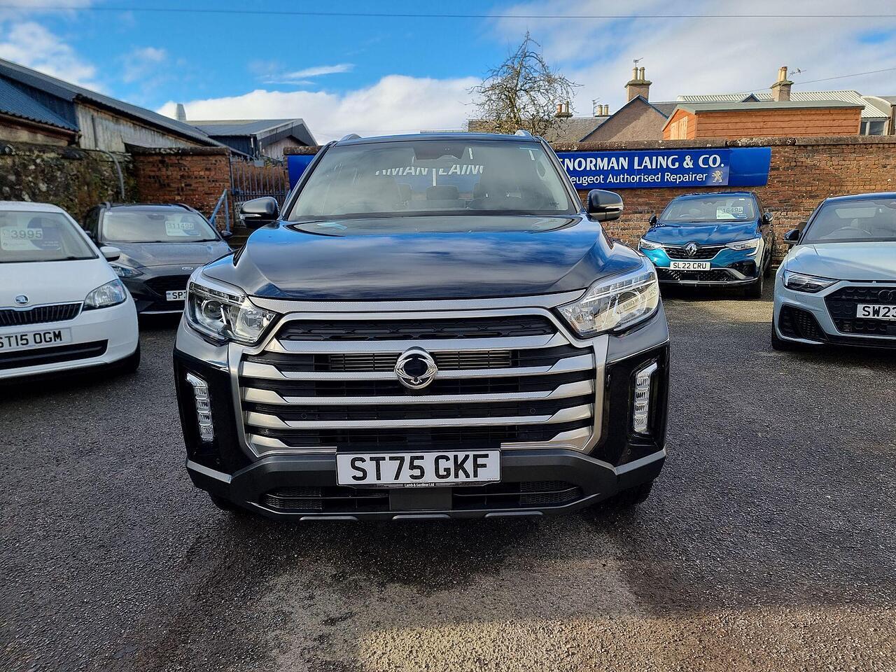 This KGM Musso Saracen is presented in exceptional condition with an incredibly low mileage of just 152 miles, making it virtually as new. This 2025 registered 2.2D Saracen Auto 4WD Euro 6 4dr benefits from having had only one owner since new. Under the bonnet, it boasts a powerful 2.2 litre diesel engine delivering 199 bhp, paired with a capable four wheel drive system. The Saracen trim level ensures a premium experience, featuring desirable amenities such as ventilated and heated front seats, automatic dual zone air conditioning, and a heated steering wheel for ultimate comfort. Connectivity is seamless with Apple CarPlay and Google Android Auto integration, while rear passengers can also enjoy the comfort of heated rear seats.
